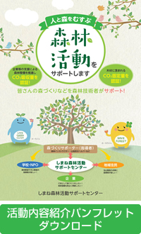 「木を植えて、育て収穫し、また植える」という「緑の循環」を通じて森づくりへの県民参加の推進を行い、島根県の森林整備に寄与することを目的として、しまね森林活動サポートセンターは設置されました。